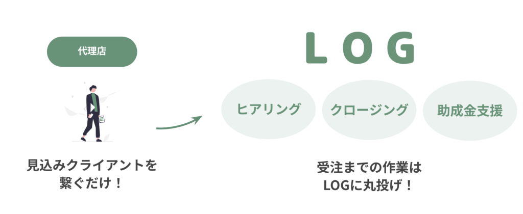 そのため、代理店の皆さまにはまず、「お客様とLOGをつなぐ」役割からスタートしていただきます。