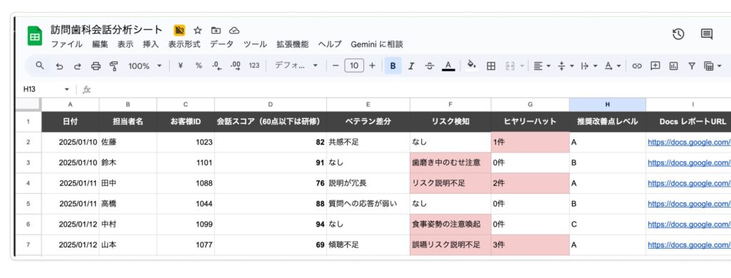 - 例:「歯茎の腫れ+熱感 → 急性炎症注意」「嚥下機能低下の兆候 → 食事形態のアドバイス」